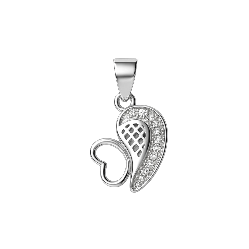 925 Sterling Silver Angel Wing Heart Pendant with Cubic Zircon