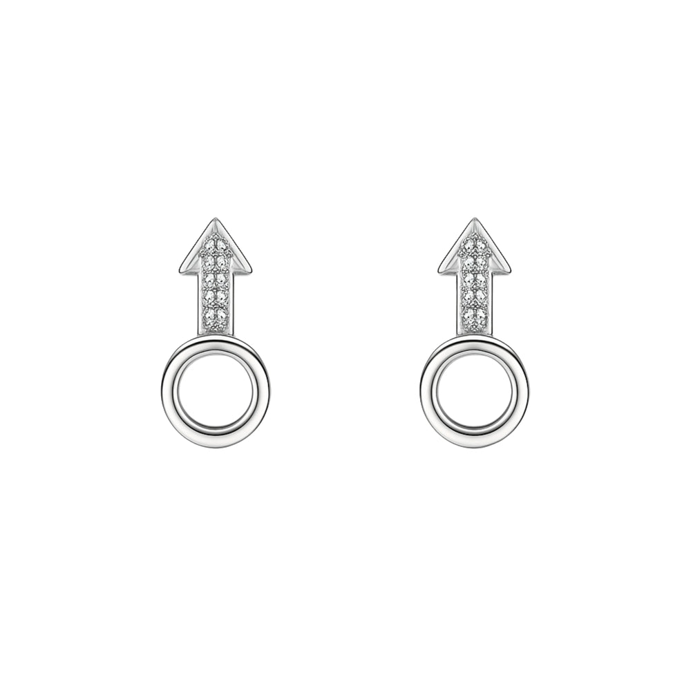 925 Sterling Silver Arrow & Circle CZ Stud Earrings for Women