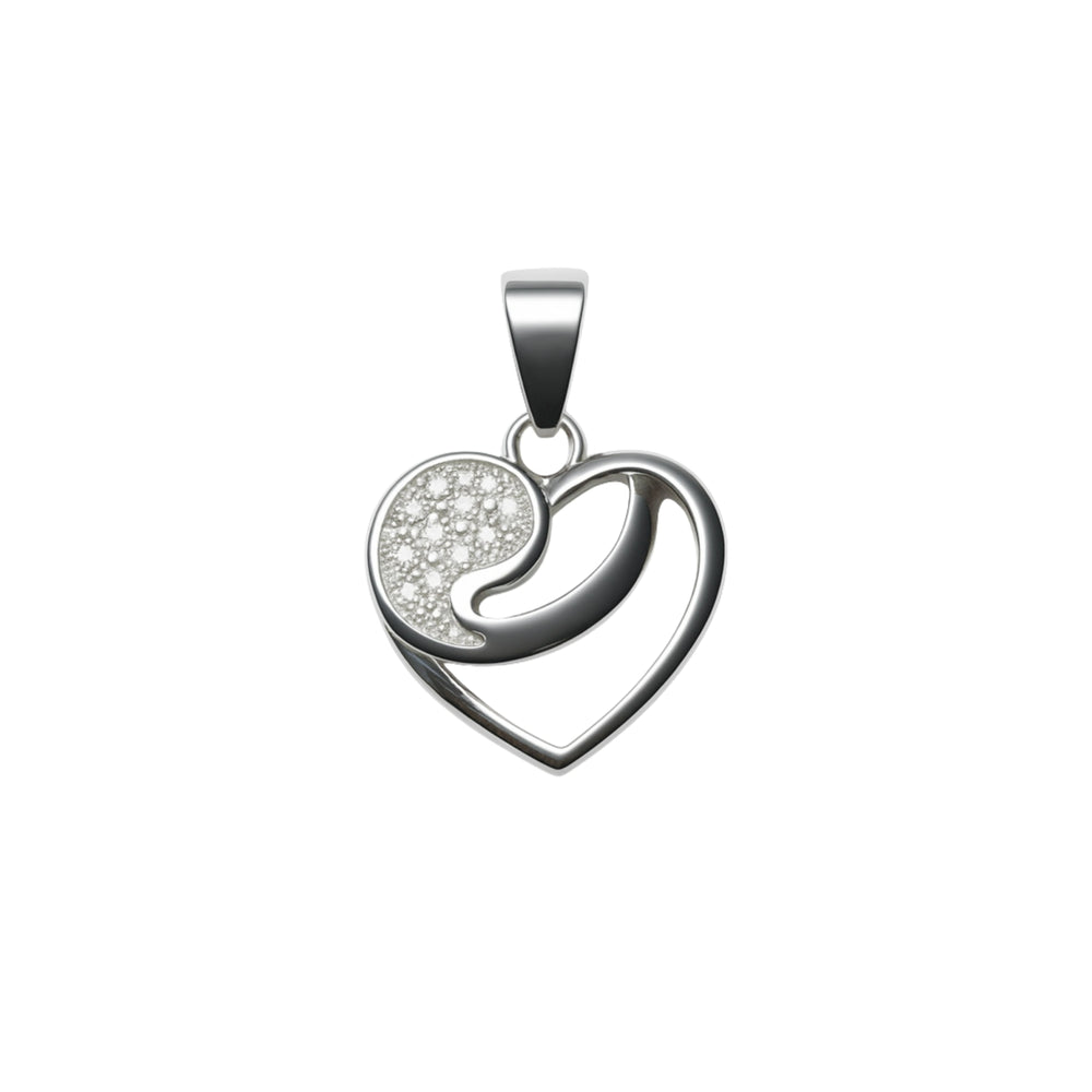 925 Sterling Silver Asymmetrical Heart Swirl Pendant with Cubic Zircon