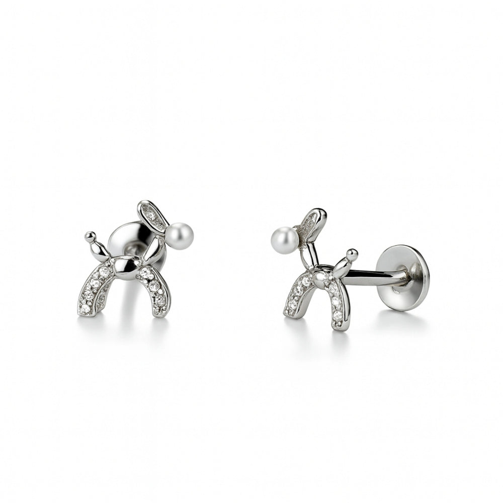 925 Sterling Silver Balloon Dog Pearl CZ Stud Earrings