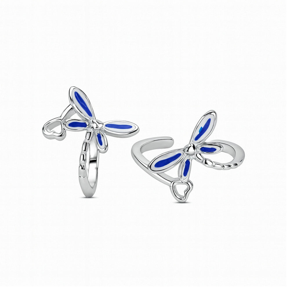 925 Sterling Silver Blue Dragonfly Toe Ring – Adjustable Enamel Design