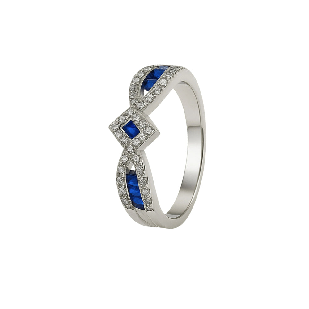 925 Sterling Silver Blue Sapphire & CZ Geometric Ring for Women