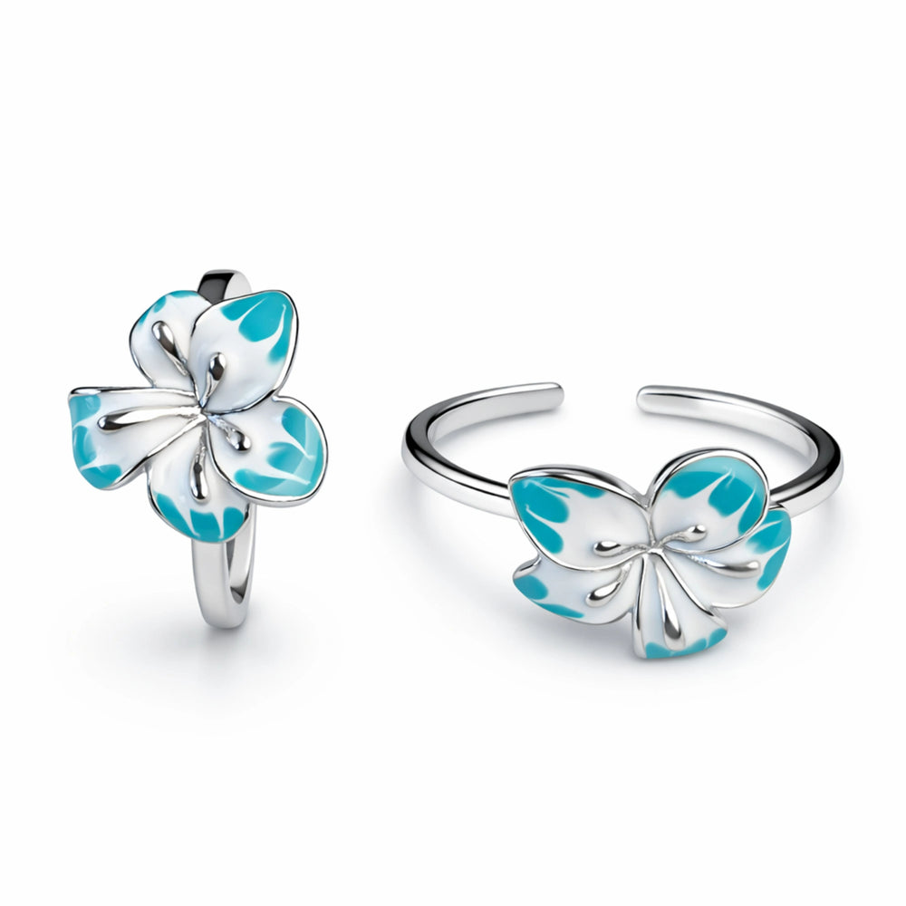 925 Sterling Silver Butterfly Toe Ring with White & Turquoise Enamel – Adjustable