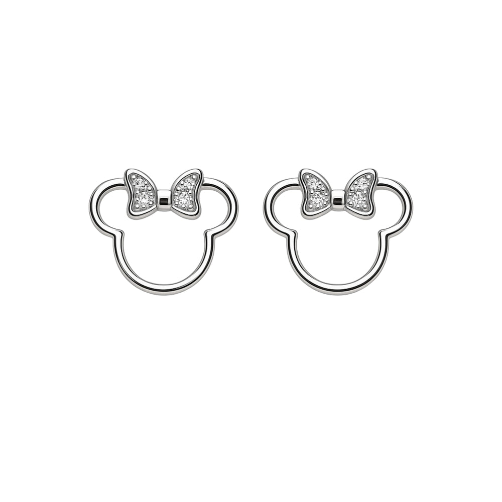 925 Sterling Silver Cartoon Mouse CZ Bow Stud Earrings