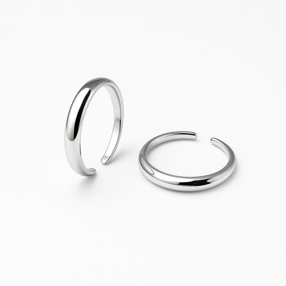 925 Sterling Silver Classic Toe Ring | Minimal Adjustable Smooth Rhodium-Plated Band