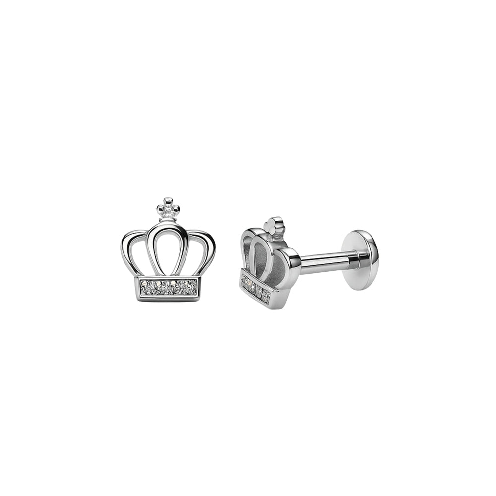 925 Sterling Silver Crown Stud Earrings with Cubic Zirconia