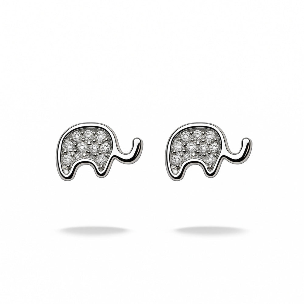 925 Sterling Silver Elephant CZ Stud Earrings for Women