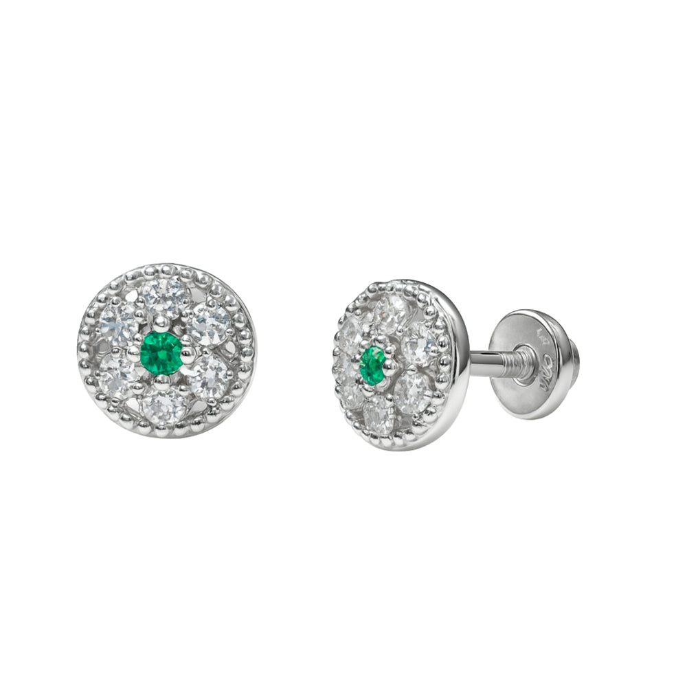 925 Sterling Silver Emerald & CZ Round Stud Earrings for Women