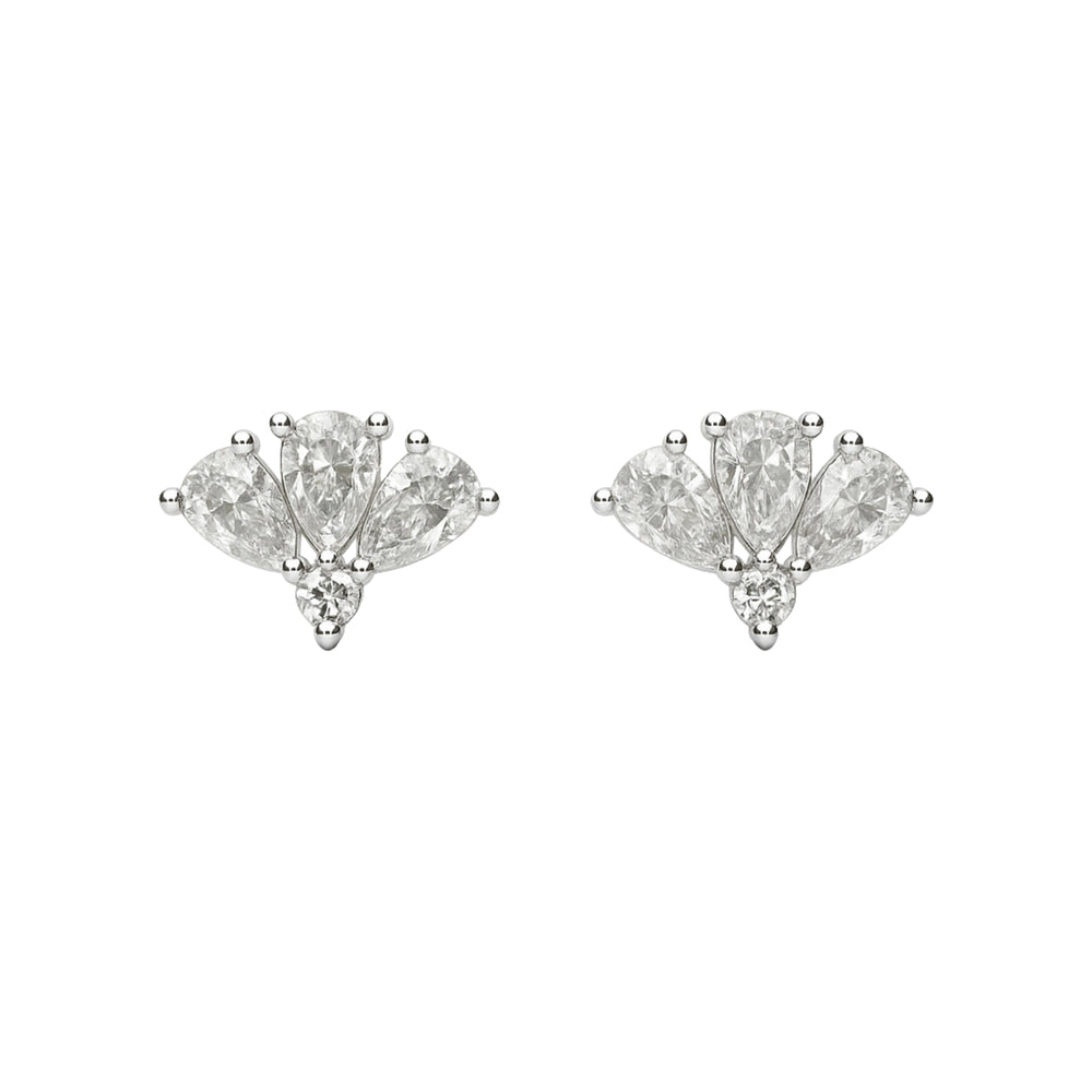 925 Sterling Silver Fan Shape CZ Stud Earrings