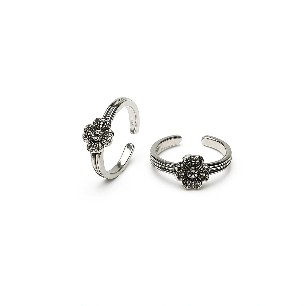 925 Sterling Silver Floral Toe Ring | Adjustable Rhodium-Plated Toe Rings for Women