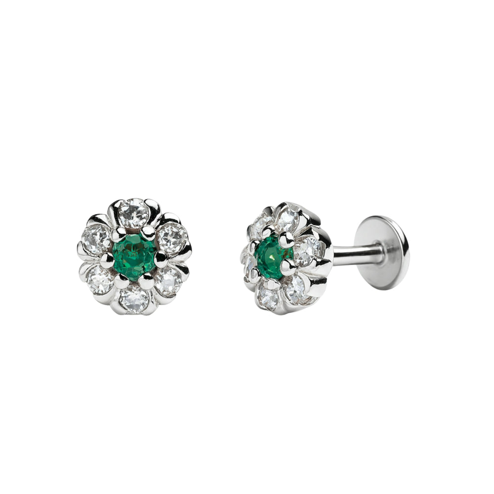 925 Sterling Silver Green CZ Floral Cluster Stud Earrings for Women