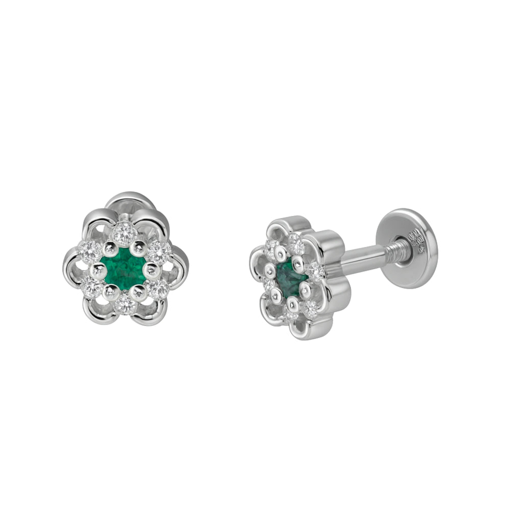 925 Sterling Silver Green CZ Floral Halo Stud Earrings for Women