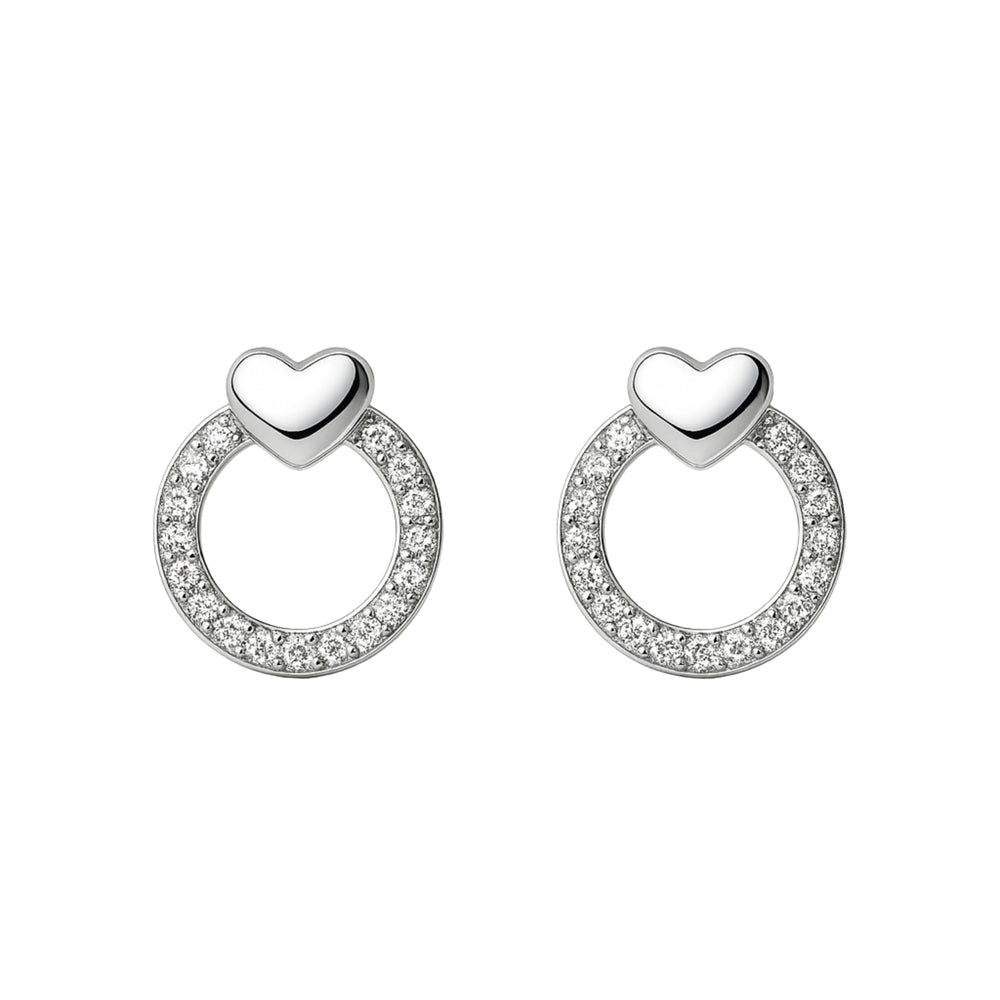 925 Sterling Silver Heart Circle CZ Stud Earrings