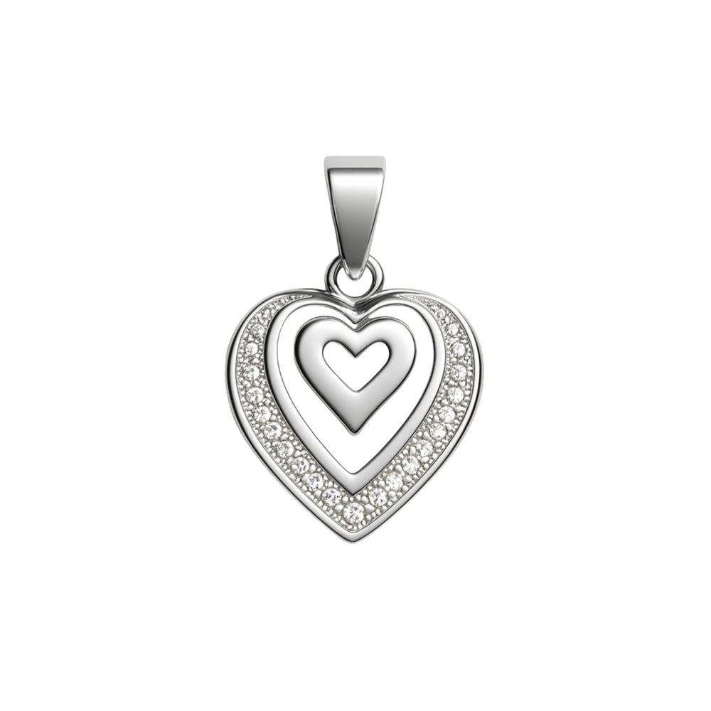 925 Sterling Silver Layered Heart Pendant with Cubic Zircon Border