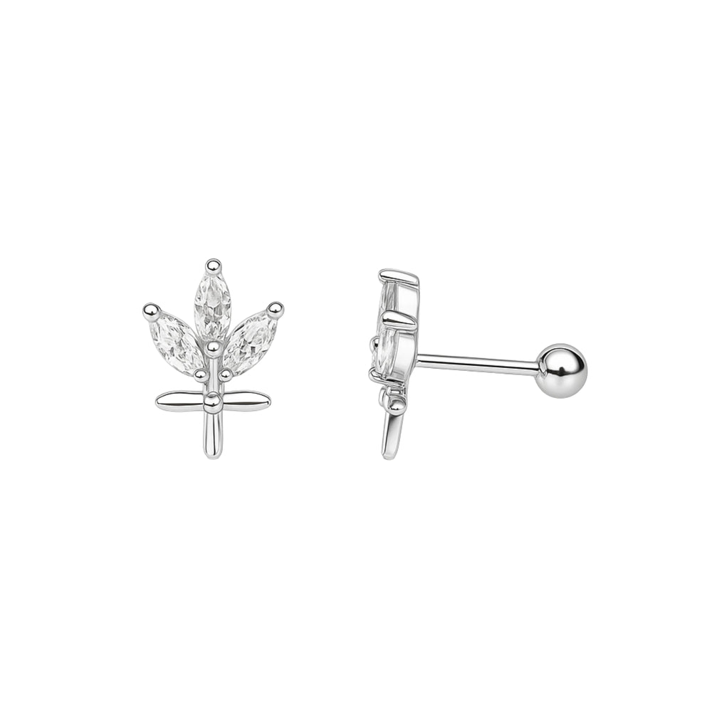 925 Sterling Silver Leaf CZ Flat Back Stud Earrings