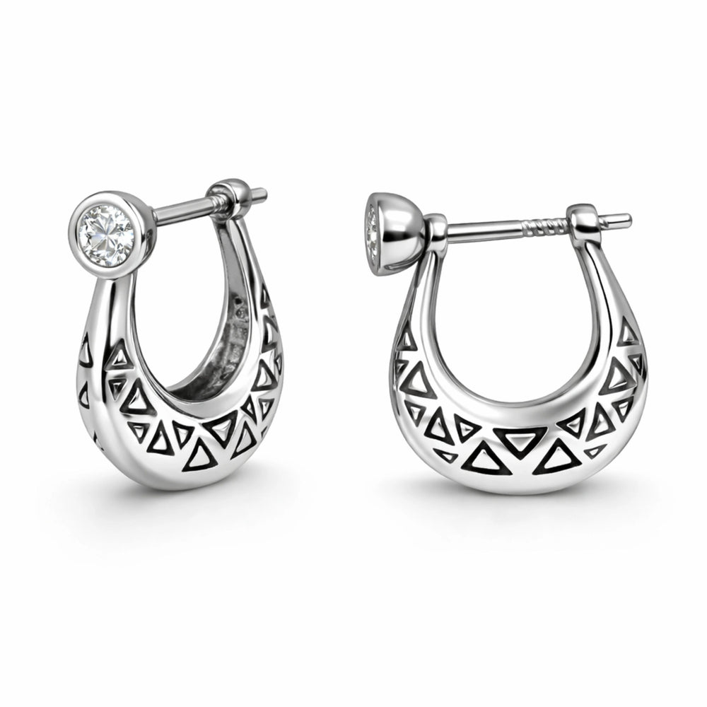 925 Sterling Silver Men’s Bali Hoop Earrings with Clear Stone