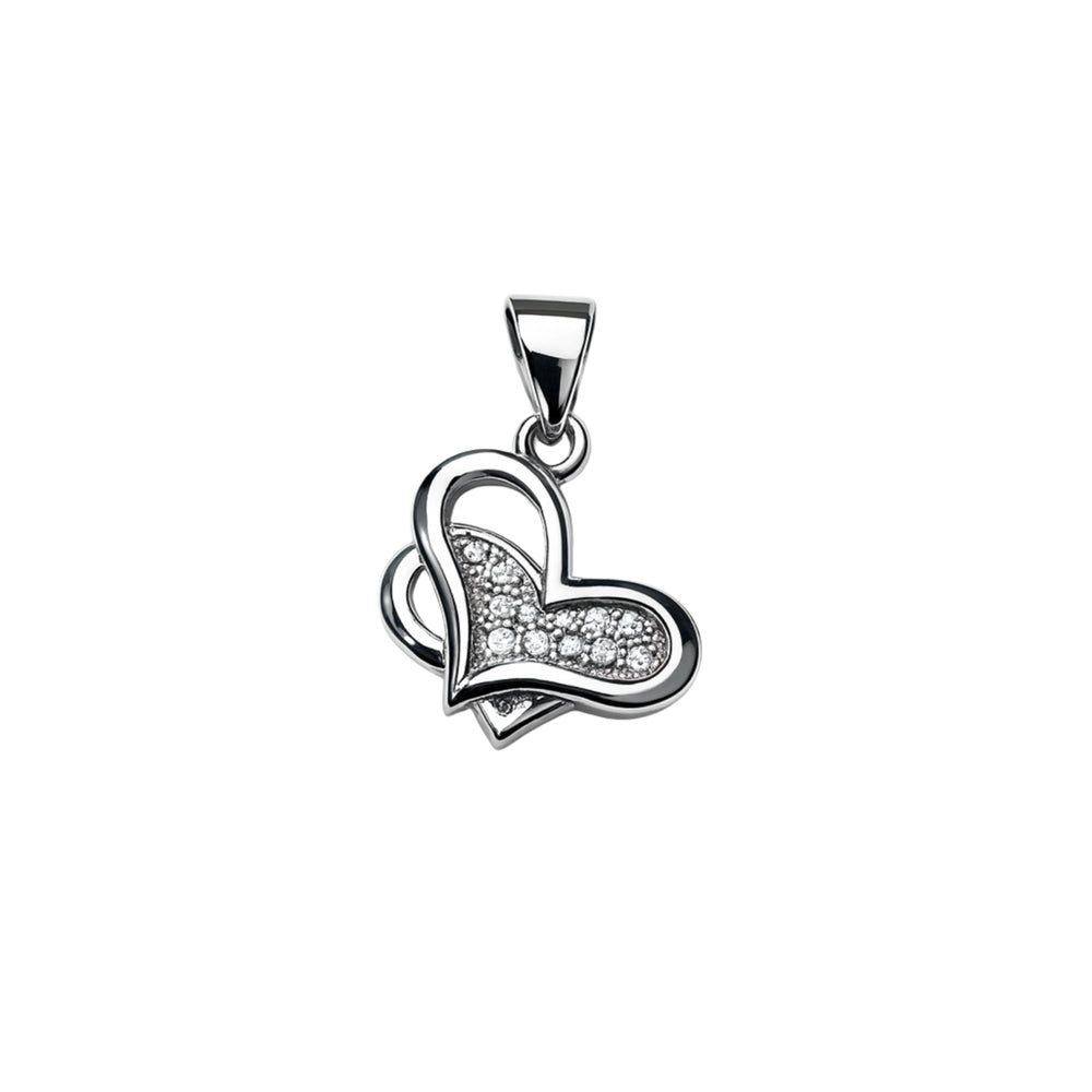 925 Sterling Silver Modern Heart Pendant with Cubic Zircon Stones