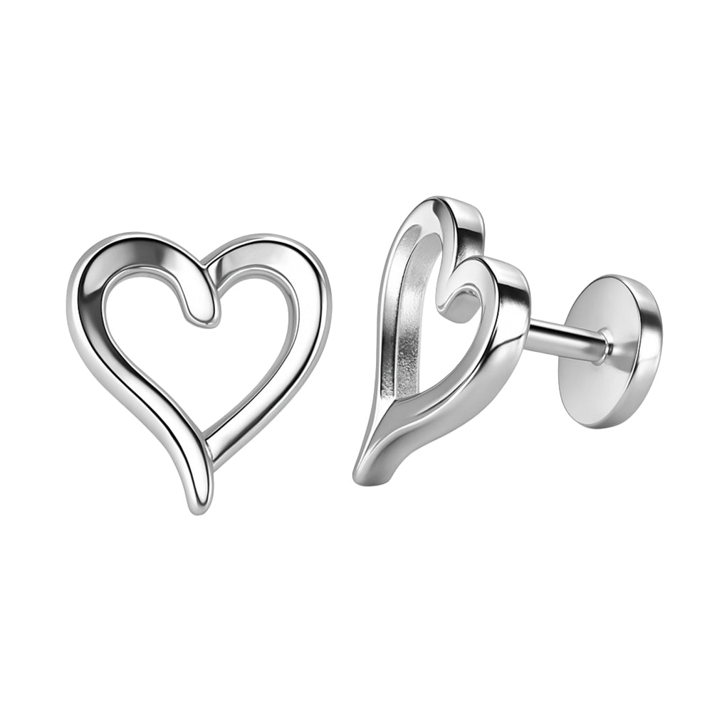 925 Sterling Silver Open Heart Stud Earrings for Women
