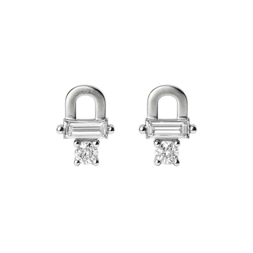 925 Sterling Silver Padlock CZ Stud Earrings for Women