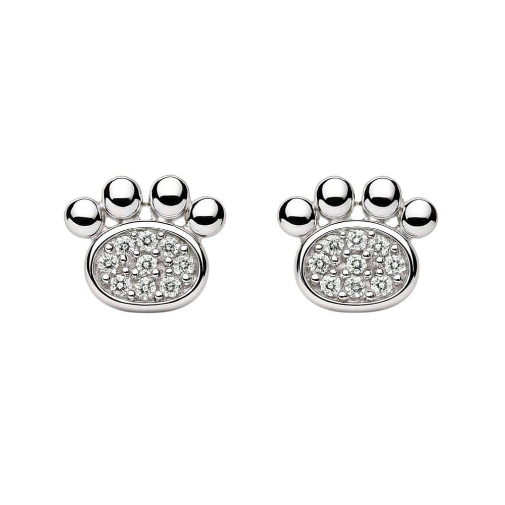 925 Sterling Silver Paw Print CZ Stud Earrings for Women