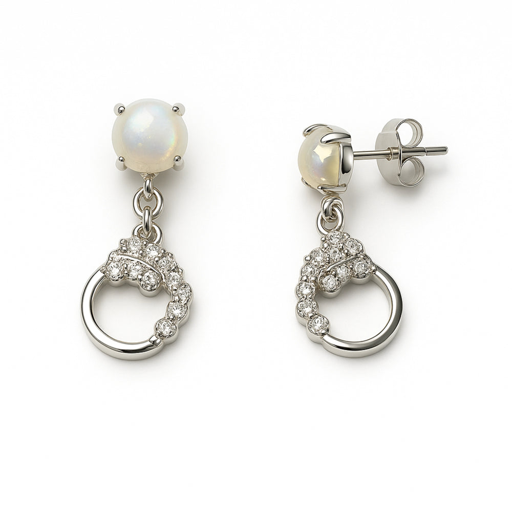 925 Sterling Silver Pearl Circle Drop Earrings | CZ Pavé Loop Dangle Design for Women