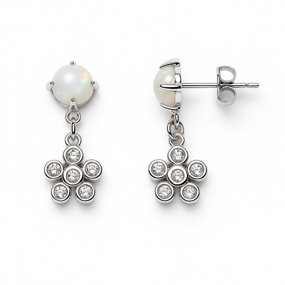 925 Sterling Silver Pearl Floral Drop Earrings | CZ Flower Dangle Design for Women