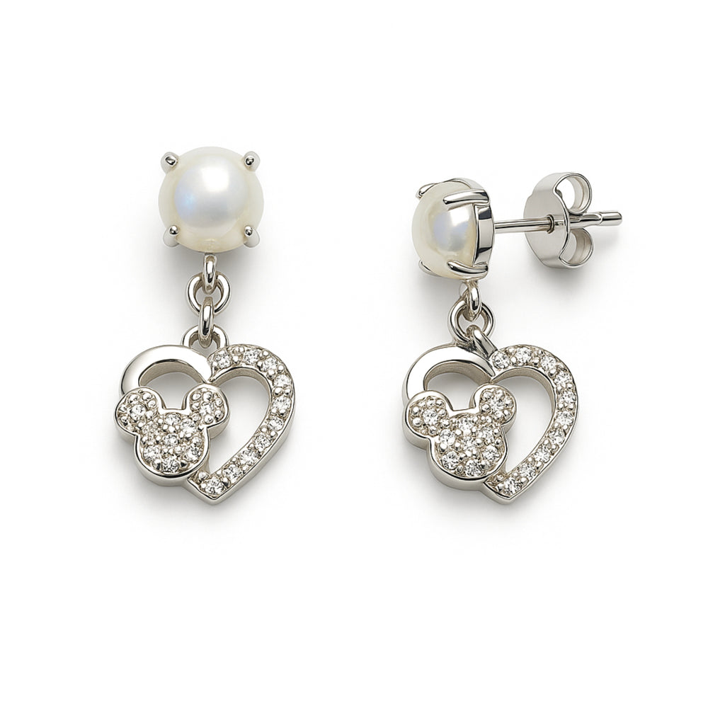 925 Sterling Silver Pearl Heart Drop Earrings | CZ Teddy Charm Dangle Design for Women