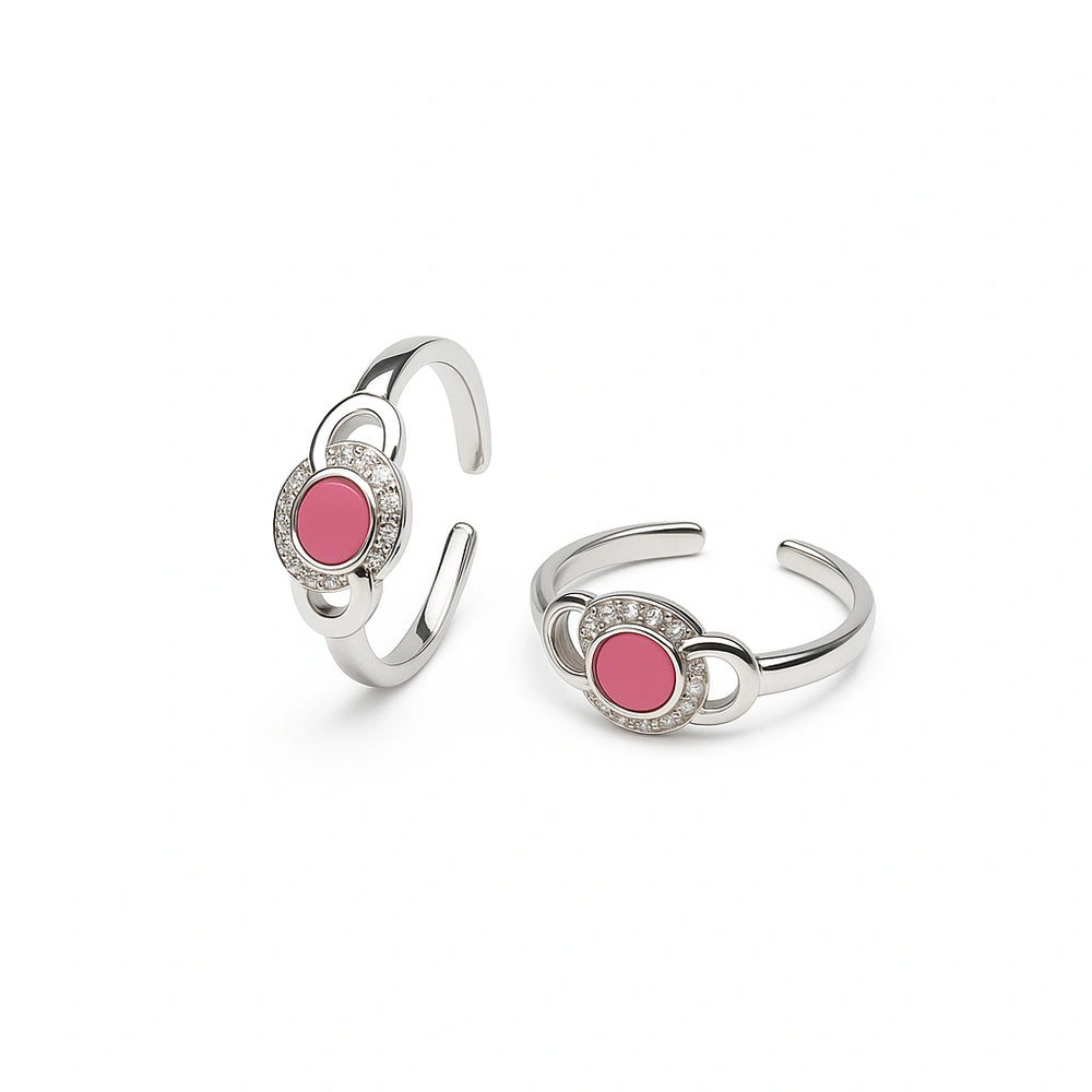 925 Sterling Silver Pink Enamel Toe Ring | Adjustable Rhodium-Plated CZ Toe Jewelry for Women