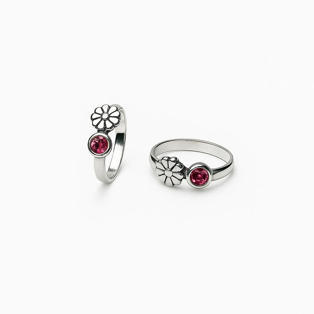 925 Sterling Silver Pink Stone Floral Toe Ring | Adjustable Flower Design for Women