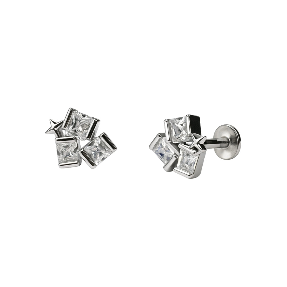 925 Sterling Silver Princess Cut CZ Cluster Stud Earrings