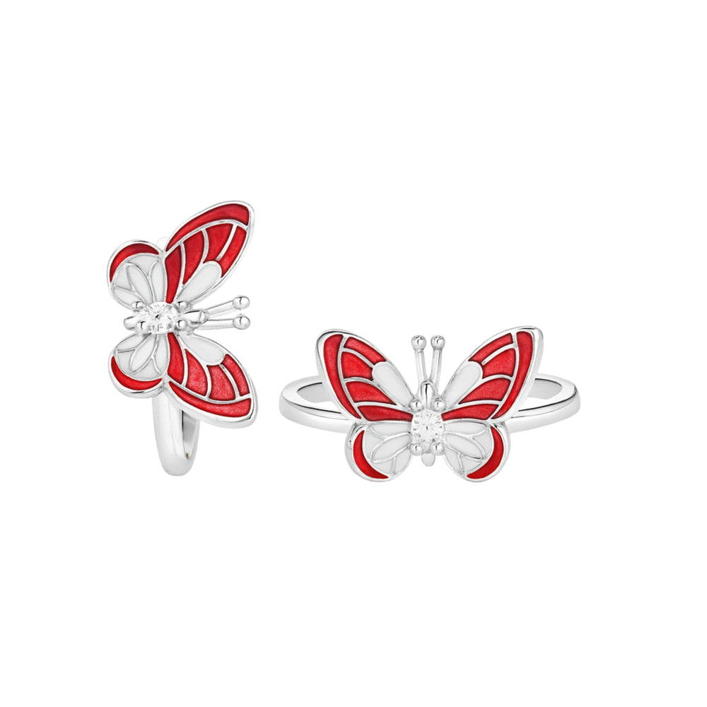 925 Sterling Silver Red Butterfly Toe Ring – Adjustable Enamel Design