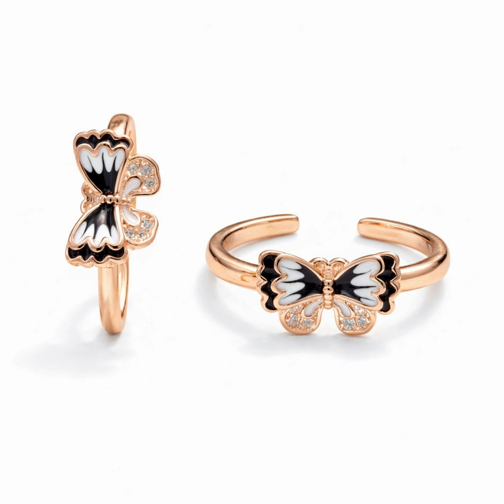 925 Sterling Silver Rose Gold Plated Black & White Enamel Butterfly Adjustable Toe Ring