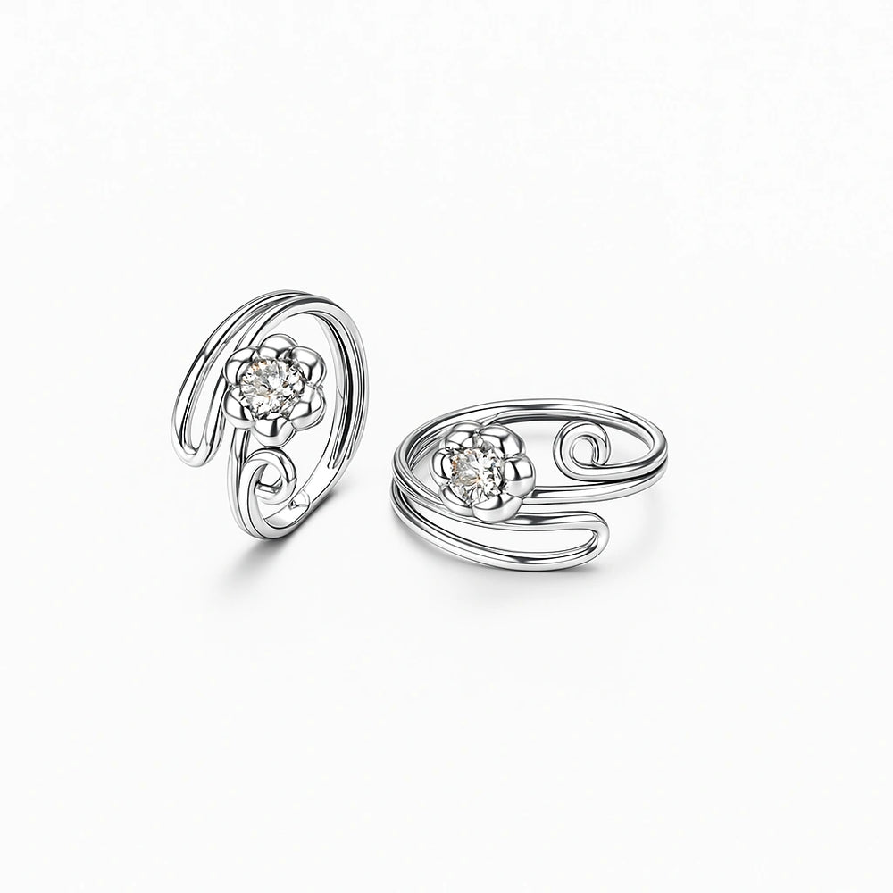 925 Sterling Silver Spiral Floral Toe Ring | Adjustable Swirl Design with CZ Stone