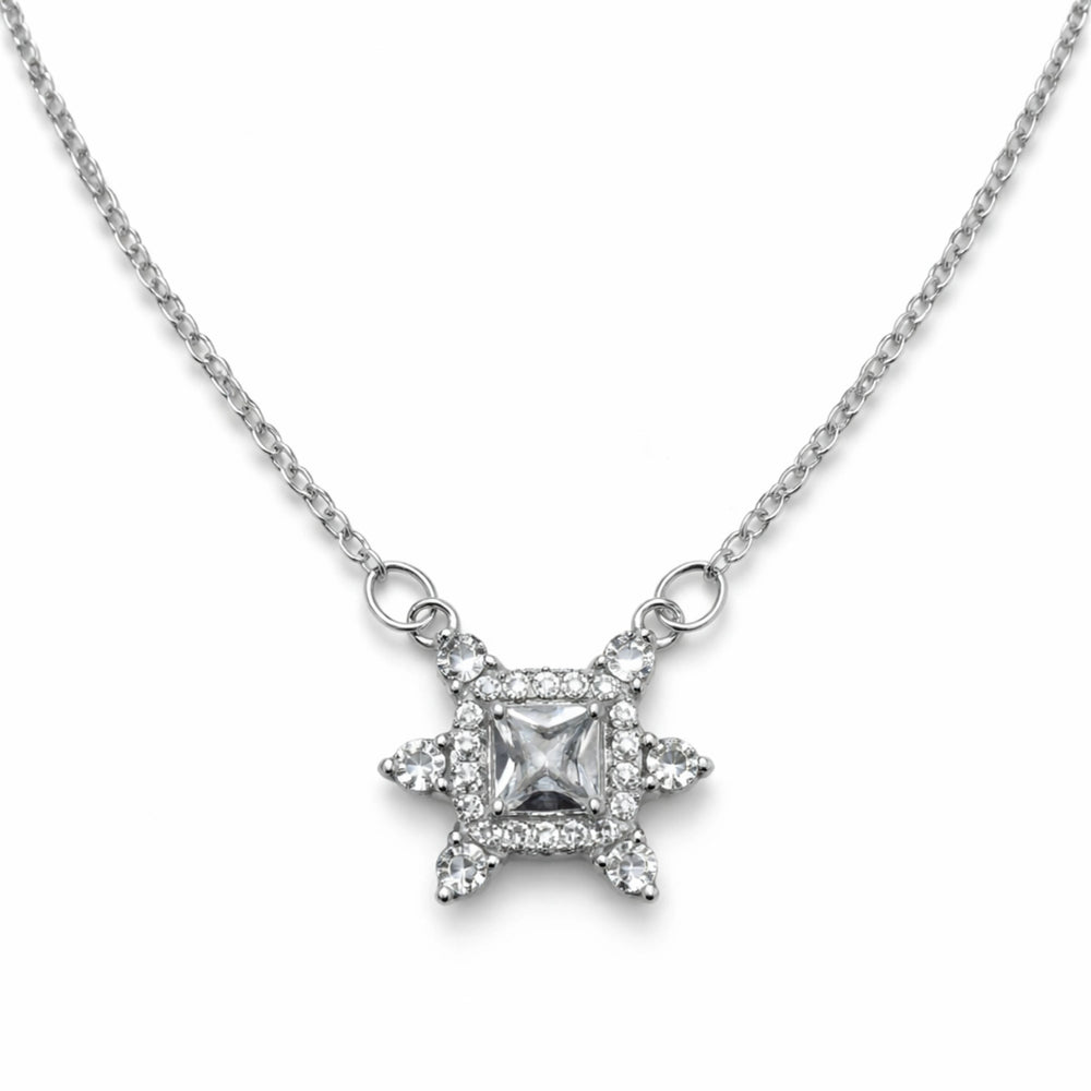 925 Sterling Silver Square Halo Crystal Necklace for Women