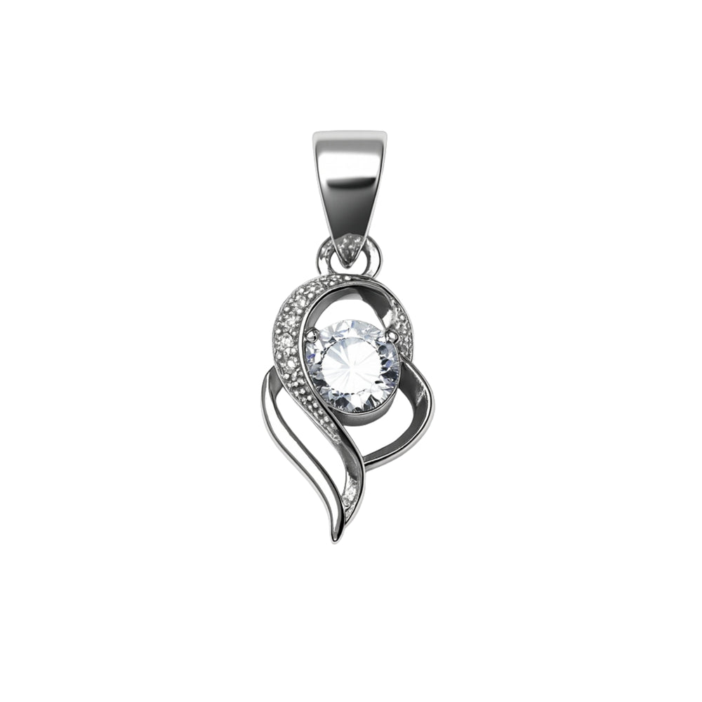 925 Sterling Silver Swirl Pendant with Round Cubic Zircon