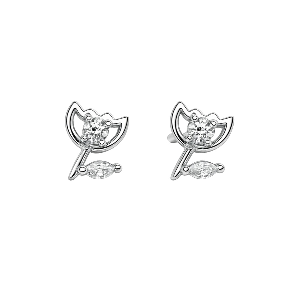925 Sterling Silver Tulip Flower Stud Earrings with Cubic Zirconia