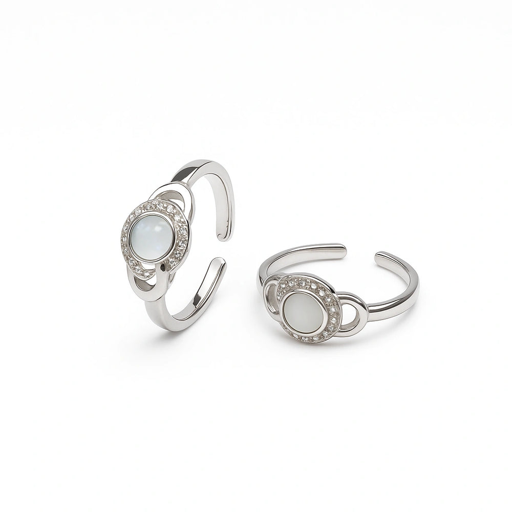 925 Sterling Silver White Opal Toe Ring | Adjustable Rhodium-Plated CZ Toe Jewelry for Women