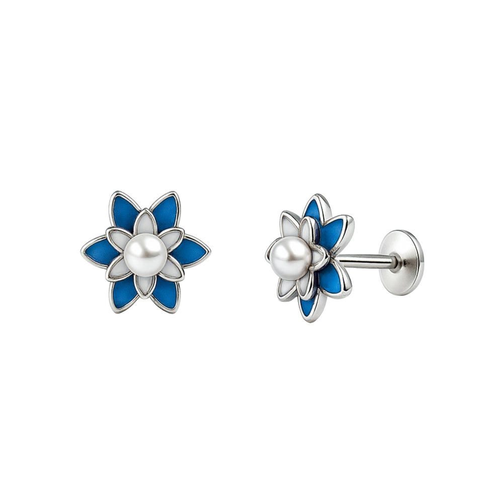 Blue Five-Petal Pearl Stud Earrings
