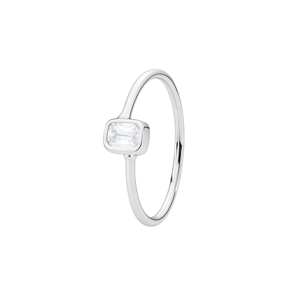 Contemporary Square Cut Diamond Silver Ring for Women
