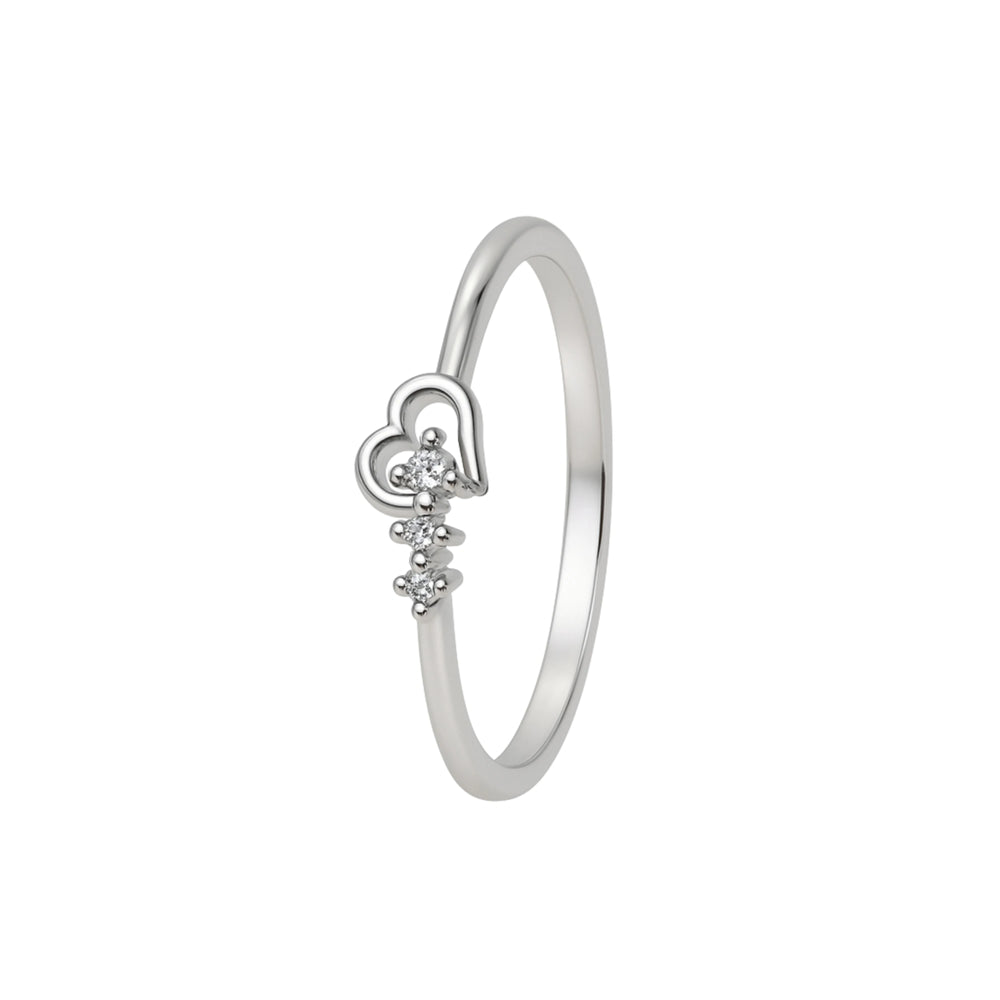 Delicate Heart Charm Diamond Silver Ring