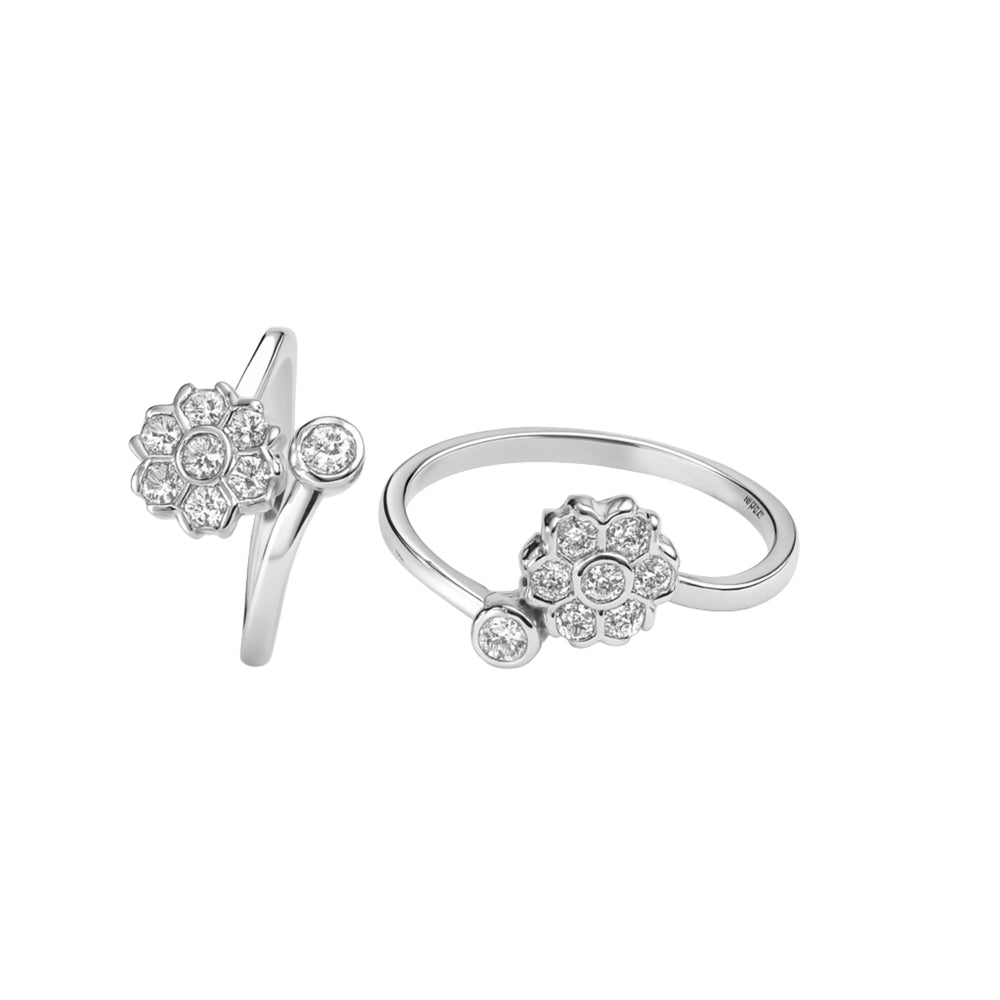 Elegant Floral Diamond Adjustable Silver Toe Rings
