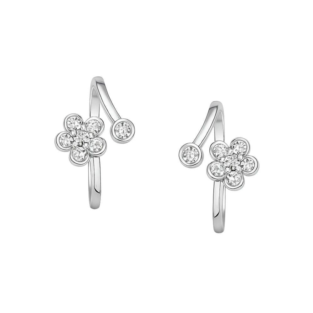 Floral Diamond Silver Toe Rings