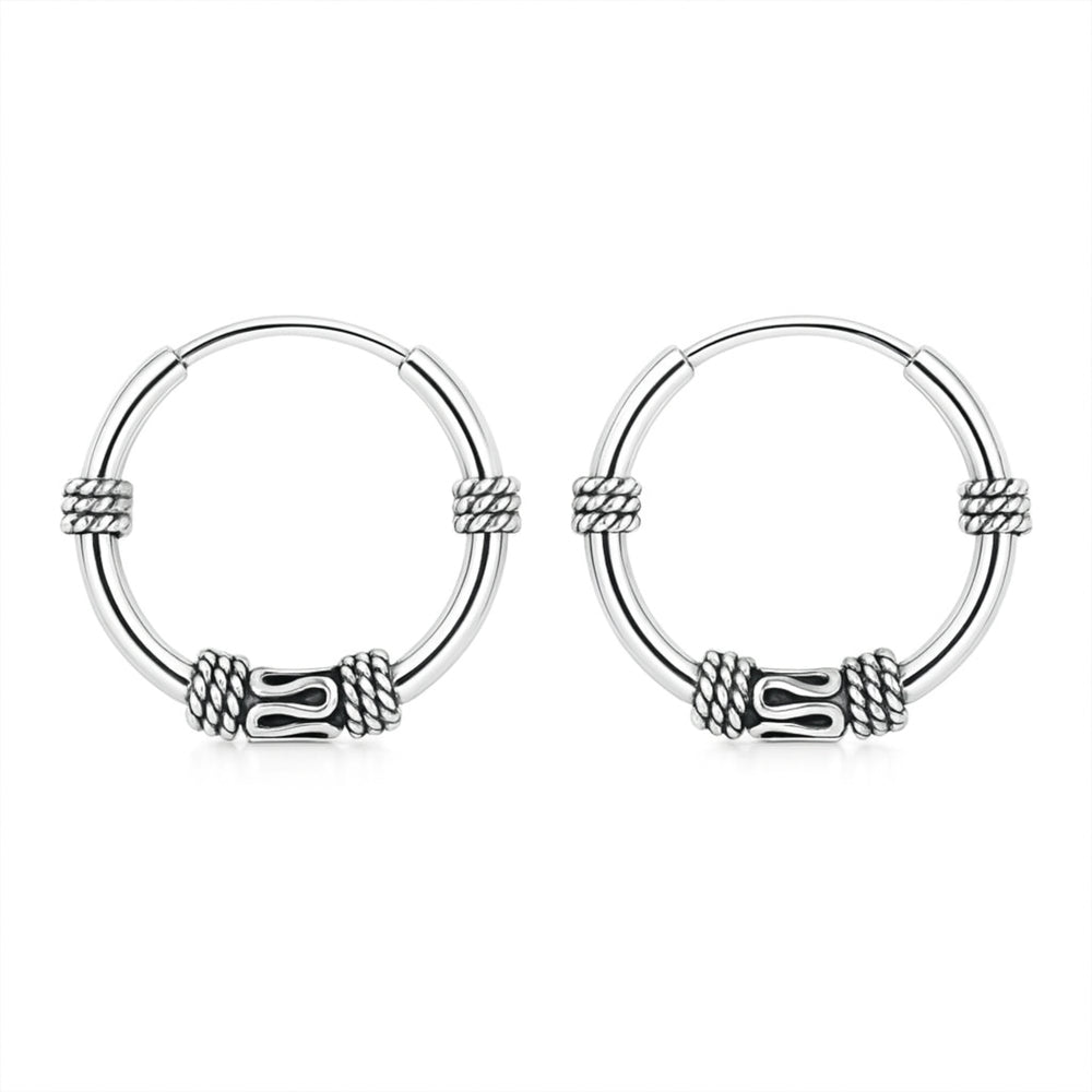 Men’s 925 Silver Bali Earrings – Multi Rope Ring Hoop with Tribal Tube Detailing