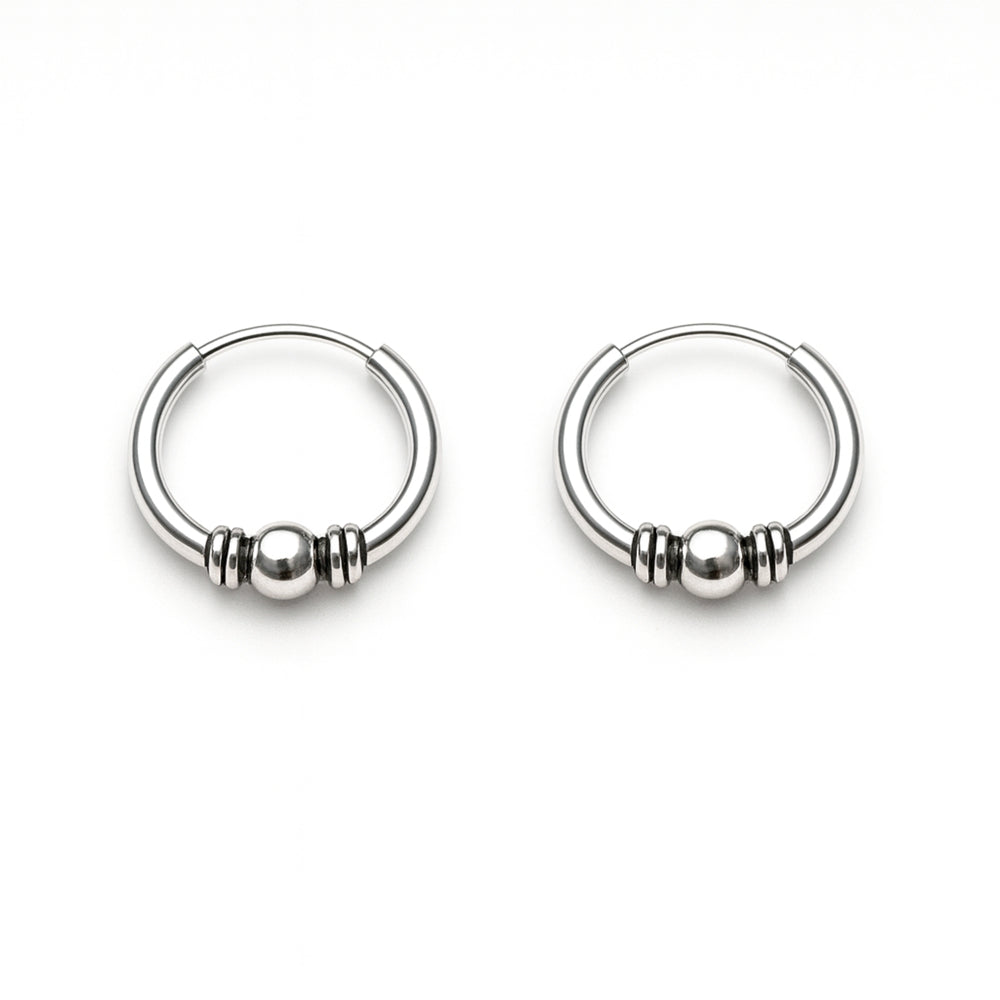Men’s 925 Silver Simple Bali Earrings – Polished Bead Hoop with Double Spacer Rings