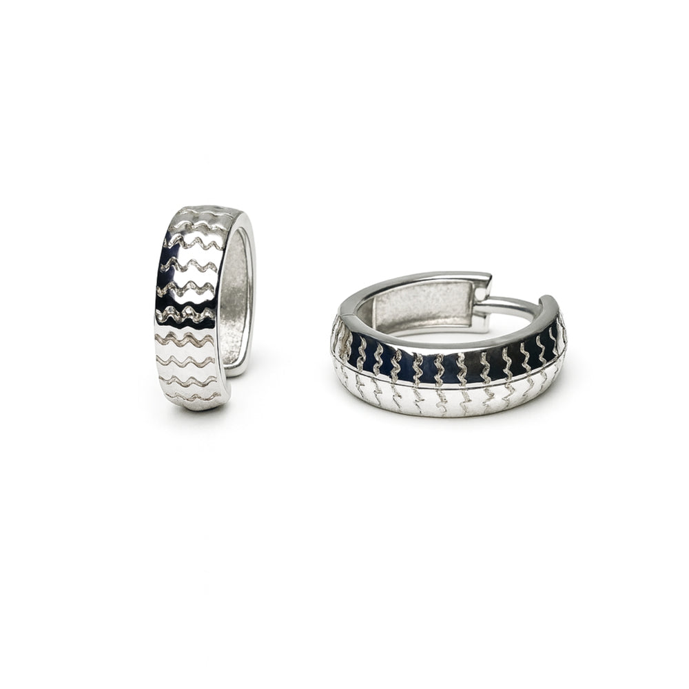 Men’s 925 Sterling Silver Bali | Zig-Zag Pattern Hoop Earrings