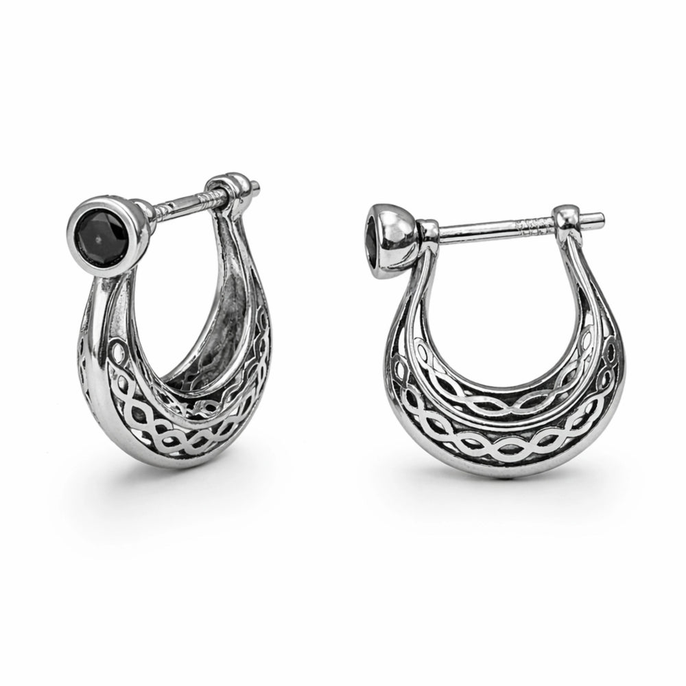 Men’s Black Stone Bali Hoop Earrings in 925 Sterling Silver