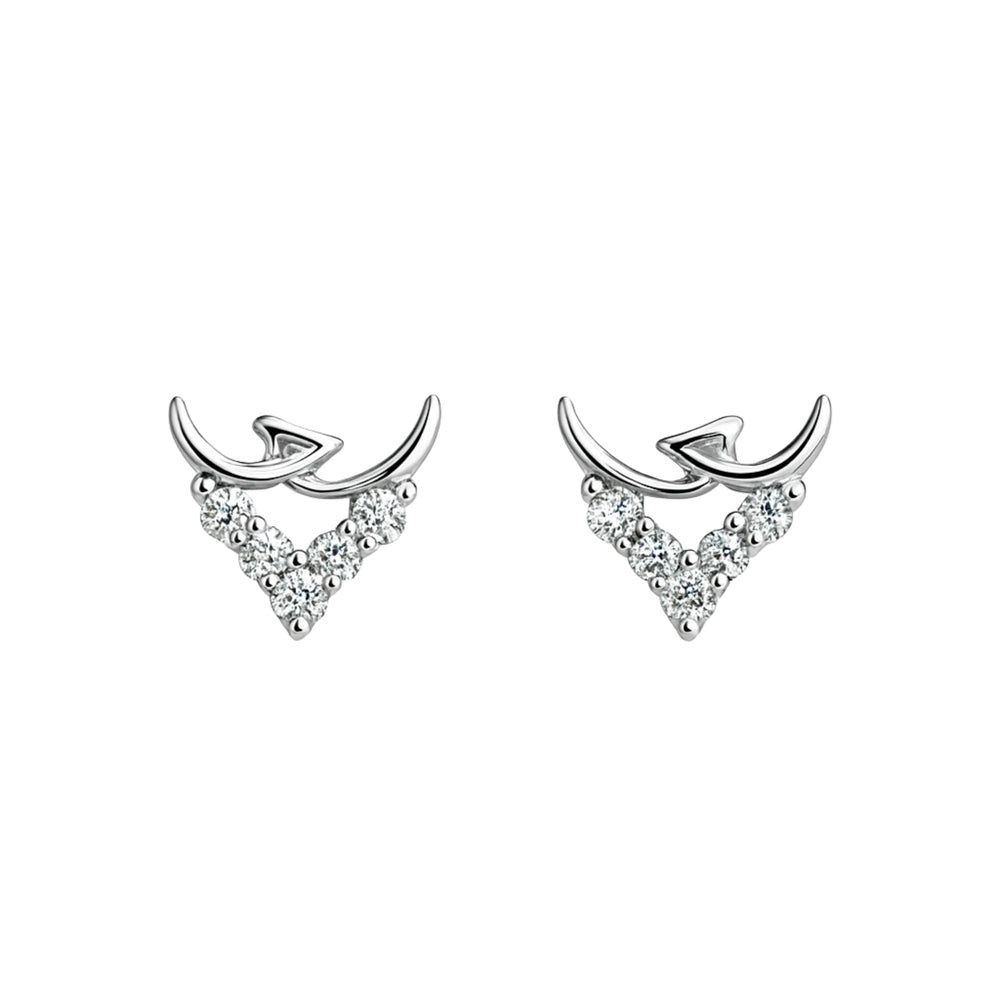 Silver Crescent V-Shape Diamond-Style Stud Earrings