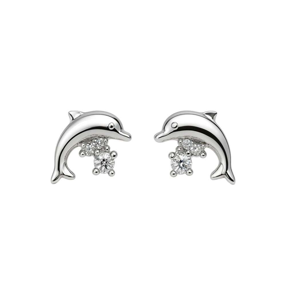 Silver Dolphin Stud Earrings with Sparkling CZ Drop