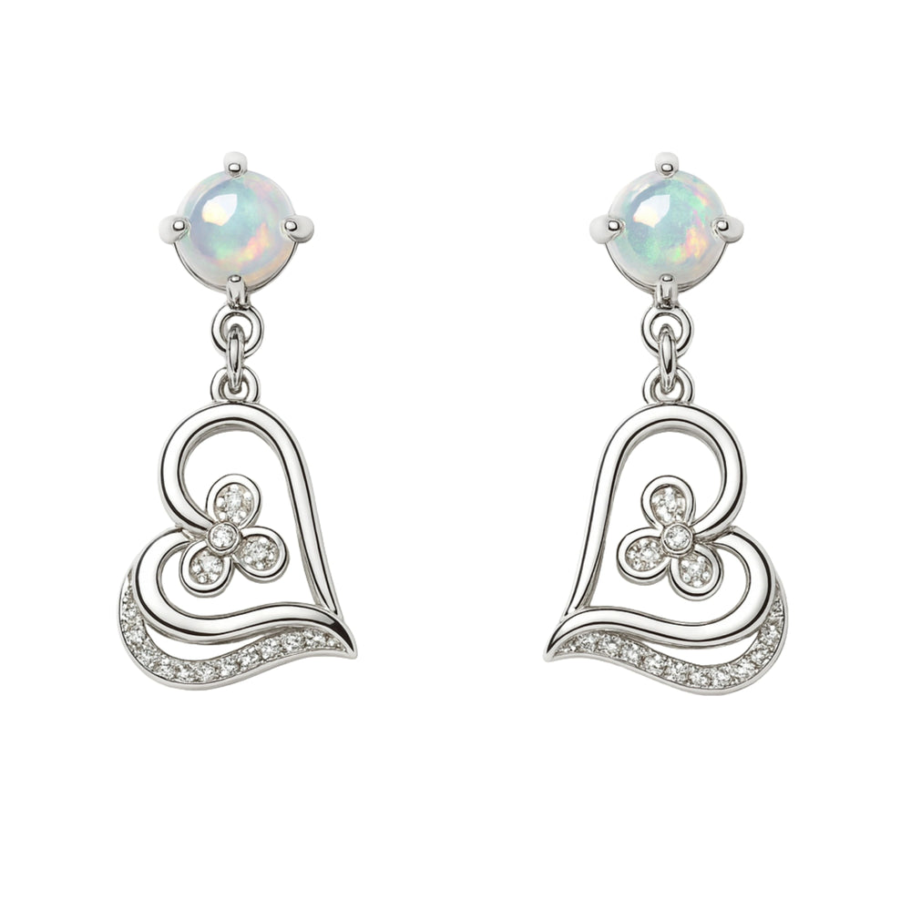 Silver Opal Floral Heart Drop Earrings for Women