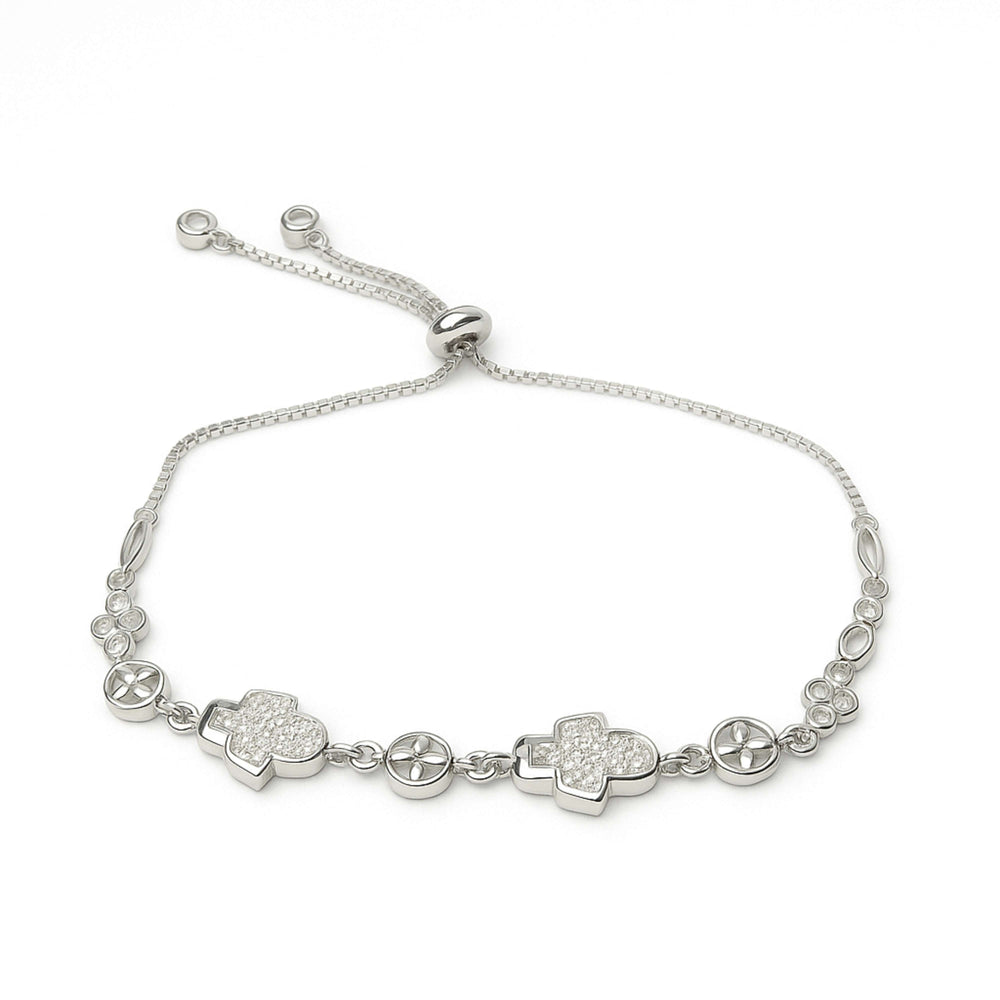 Sterling Silver Adjustable Bracelet with Clover and Round Stone Links